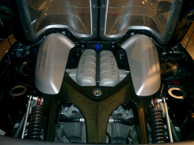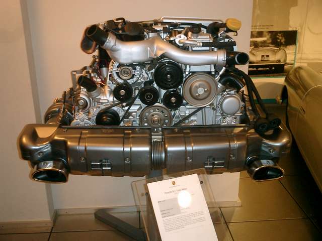 Bild Mitte der akutelle Porsche 911 Turbo Motor. Rechts